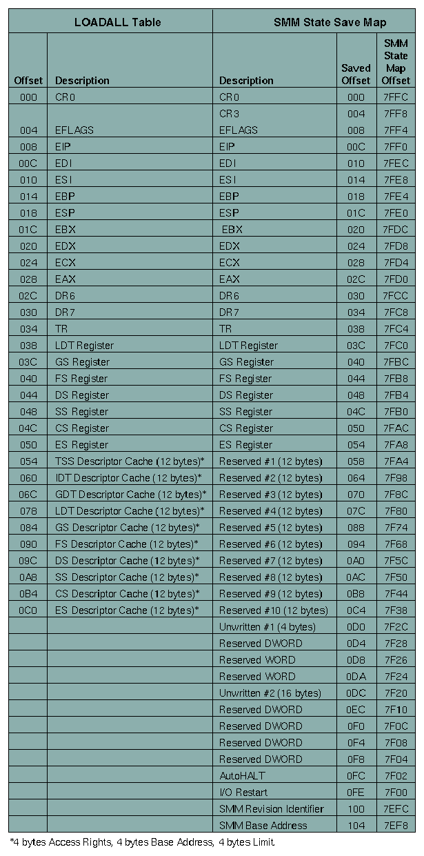 Figure 2: Comparison of LOADALL and SMM state-save map.