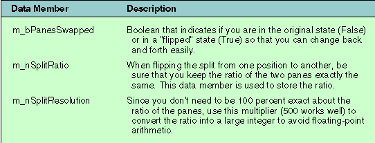 Table 2: CDobbsSplitter data members.