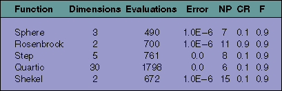 Table 1: DE's performance on the DeJong testbed.