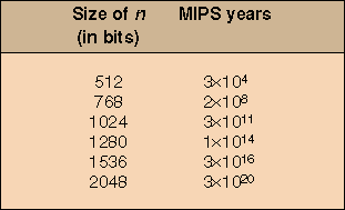 Table 4: Computing power required to factor integers using the general number field sieve.