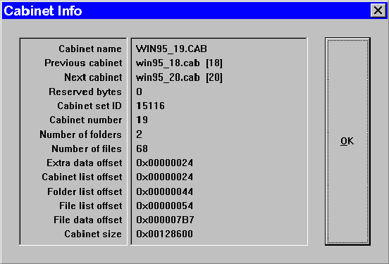 Figure 1: CabWoman.exe showing internal details of a CAB file.