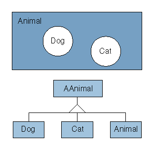 Figure 5: Venn diagram and Object Model for two disjoint classes.