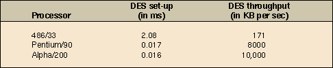 Table 1: Speed of the DES cryptographic algorithm.
