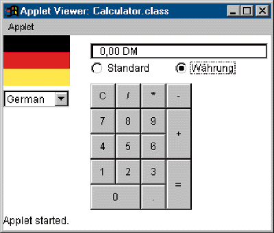 Figure 1: Calculator applet set up for German currency.
