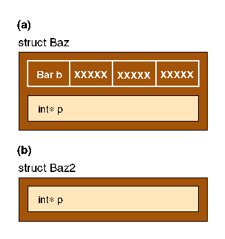 Figure 1: (a) Object with empty member subobject; (b) object with empty base class subobject.