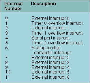 Table 3: Interrupt sources for the 8051 and variants.