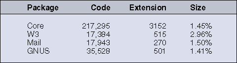 Table 2: Emacspeak provides speech-enabling extensions to different applications. These application-specific extensions are a model of code reuse; the typical extension is less than 1 percent the size of the original application.