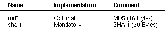 Table 5: Hash algorithms.