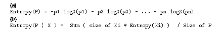 Figure 1: (a) Entropy of a probability distribution; (b) entropy of a probability distribution P that has been partitioned into sets Xi.