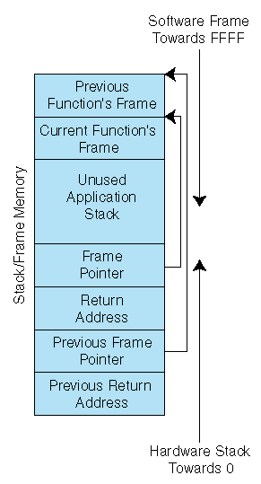 Figure 4: How memory for the separate stack and frame model is implemented.