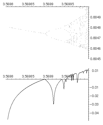 Figure 8: Bifurcation diagram and the Lyapunov exponent.