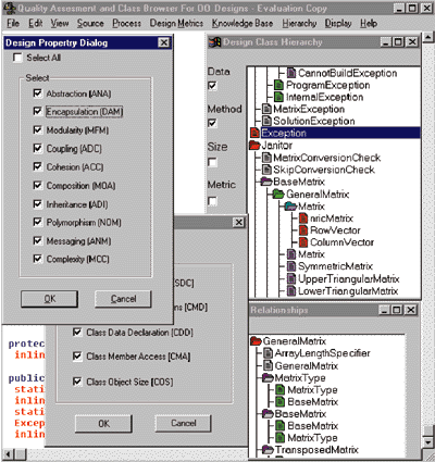 Figure 2: The QMOOD++ metrics tool in use.
