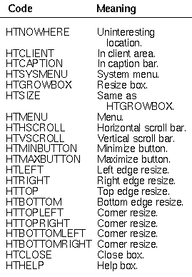 Table 2: Selected nonclient hit test codes.