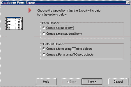Figure 6: Database form expert (first screen).