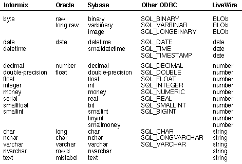 Table 4: LiveWire data type conversion matrix.