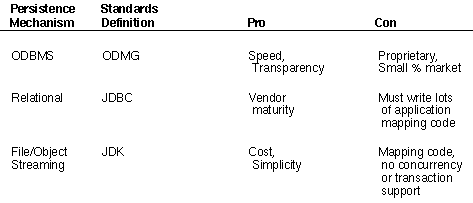 Table 1: Java persistence mechanisms.