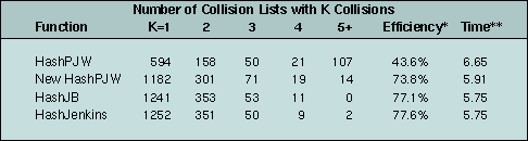 Table 1: Comparison of hash functions on typical UFDL forms. 2150 objects were placed in the hash table. *Efficiency is the number of buckets/N. **Time is the number of seconds to load the sample form and run all computes in it.