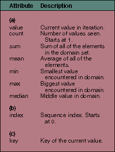 Table 3: Iteration attributes: (a) common attributes; (b) sequence attributes; (c) dictionary attributes.