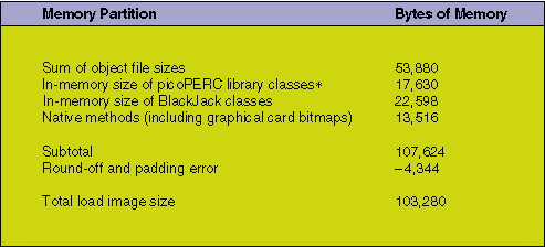 Table 1: Memory layout. (*The in-memory sizes of Java classes are approximated by scaling individual class file sizes proportional to the ratio between the sum of class file sizes and the size of the ROM memory image.)