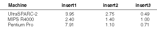 Table 1: Run times of insertion functions.