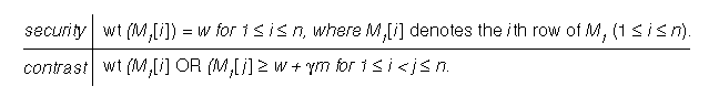Example 6: If these two properties are satisfied, then the matrices M0 and M1 comprise a two-out-of-n visual-threshold scheme.