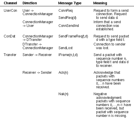 Table 1: Examples of messages in the sliding-window protocol.