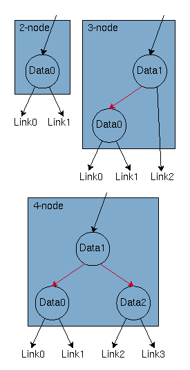 Figure 3: Red-black representations of 2-, 3-, and 4-nodes.