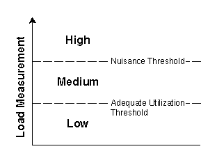 Figure 2: Measuring system load using the nuisance threshold and the adequate utilization threshold.