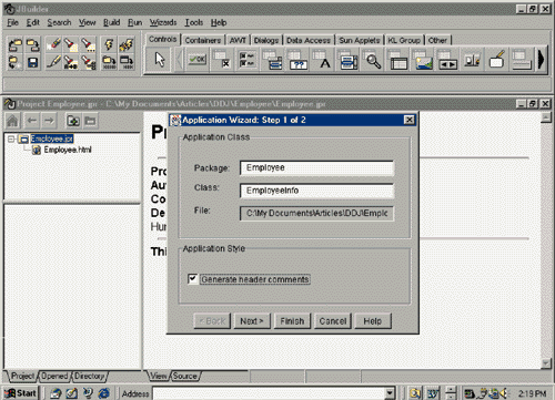 Figure 1: Invoking the New Application Wizard: Step 1.