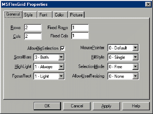 Figure 1: Microsoft's FlexGrid executing the properties verb.