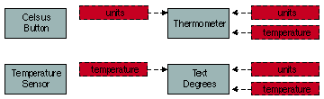 Figure 3: Relationships of objects and notifiers in Release 1. Pink boxes shows the notifiers, with arrows indicating if they are sent or received.