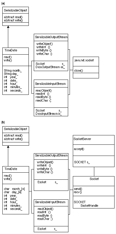 Figure 1: (a) Java classes to support object serialization; (b) C++ classes to support object serialization.