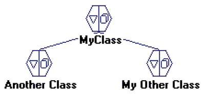Figure 1: In Prograph classes are represented by hexagonal icons and inheritance by lines connecting the classes.