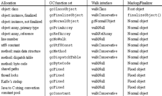 Table 1: Memory allocations linked to a dedicated garbage-collection function set.