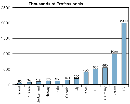 Figure 4: Approximations of the size of the software professional workforce.