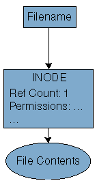 Figure 1: The UNIX filesystem uses inodes as an extra layer of indirection between a file's name and its contents.