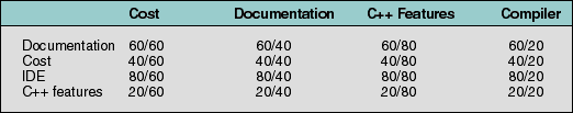 Table 2: Matrix of pairwise comparisons from Table 1.