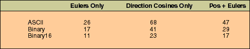 Table 1: Size of single sensor record in bytes for various record formats.
