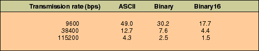 Table 2: Record transmission time. Single sensor record POS+Eulers in milliseconds.