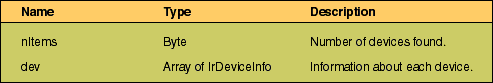 Table 3: IrDeviceList structure.