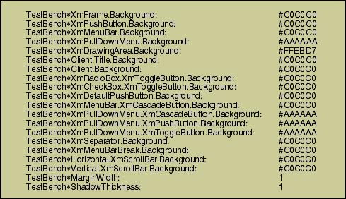 Table 2: X Motif resources for TestBench.