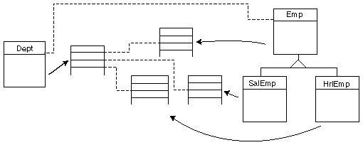 Figure 16: Complex translation from an object association to multiple database relationships.