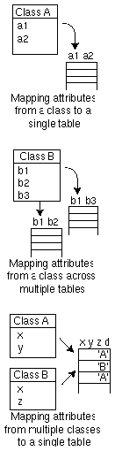 Figure 4: Various class-to-table mapping schemes.