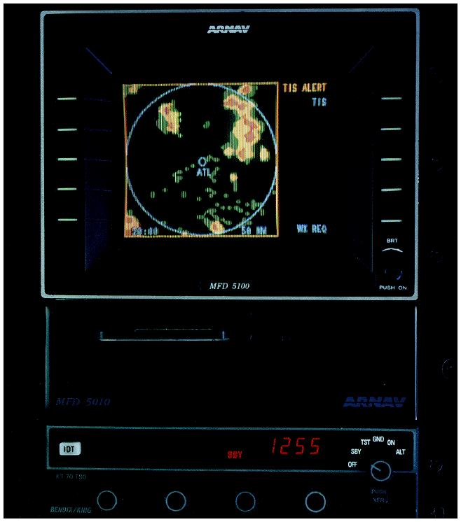 Figure 2: Close up of the datalink demonstration unit which groups the three datalink components together. The weather display is the same as in Figure 1.