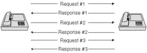 Figure 4: Illustration of H.323 V1 performance woes. Several trips between endpoints are required to connect endpoints in H.323 V1.