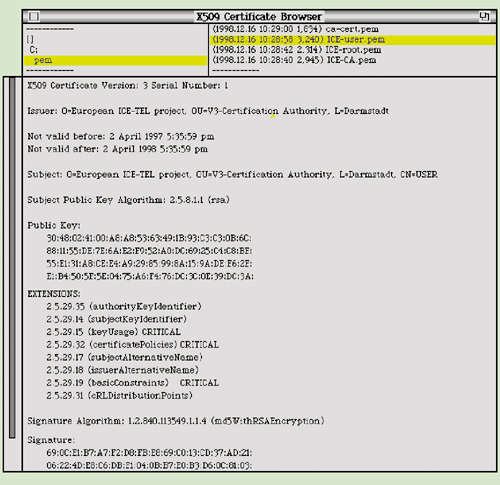Figure 7: Certificate viewed using Squeak Smalltalk X.509 Certificate Browser.