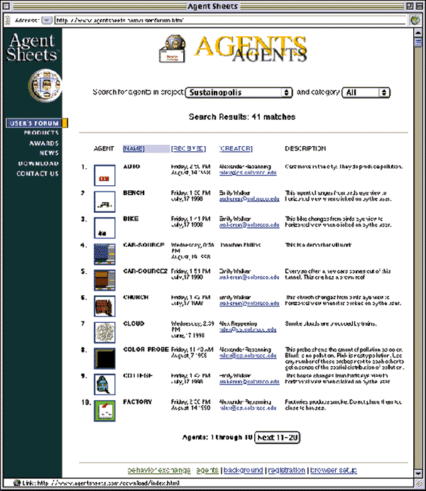 Figure 4: The Sustainopolis agents in the Behavior Exchange.