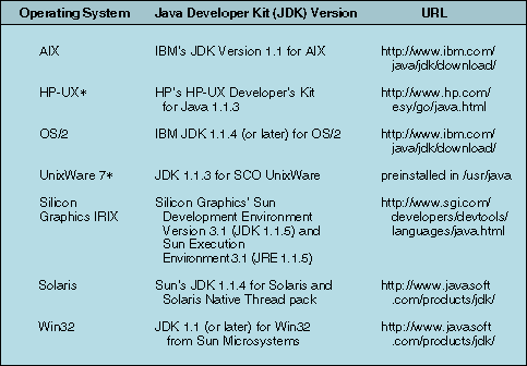 Table 2: Required versions of Java for DB2 SQLJ (*UnixWare and HP-UX do not support Java UDFs and Java stored procedures).