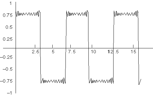 Figure 2: The Gibbs phenomenon; discontinuities are hard to approximate with sine and cosine waves.