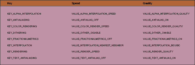 Table 1: RenderingHints explicit value mapping.